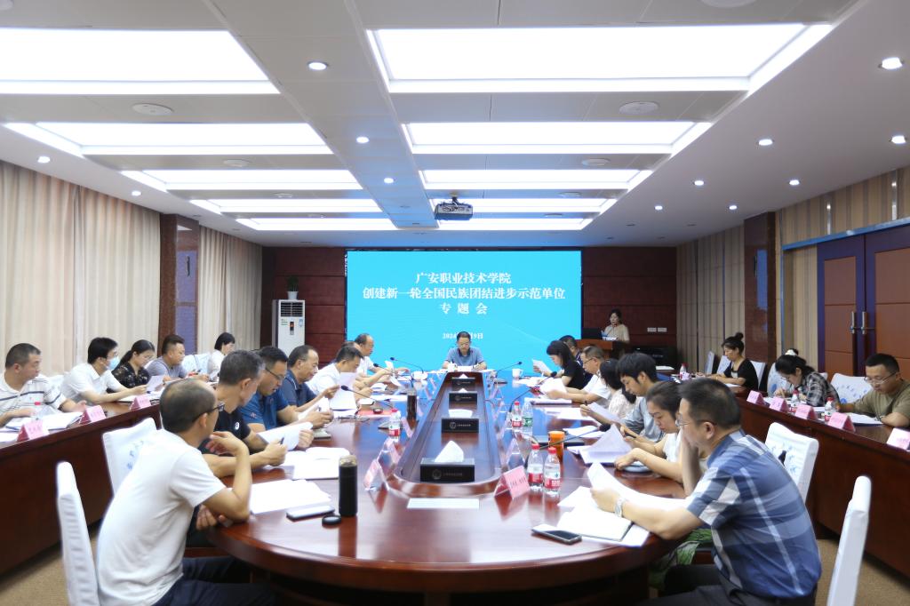 9月9日下午,学校在春晖楼4楼会议室召开创建全国民族团结进步示范单位工作推进会,会议由党委副书记陈鹏主持,党委委员、工会主席、统战部部长杨建华,党委委员、组织部部长白文春,校属各二级单位、二级学院负责人参加了此次会议。