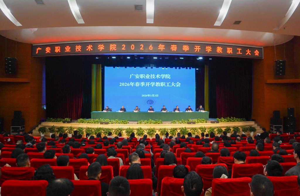春启新程,万象更新。立足新学年的崭新起点,全体广职人凝心聚气、奋楫扬帆,共同擘画学校高质量发展的宏伟蓝图。3月3日下午,学校在杏坛召开2026年春季开学教职工大会,锚定省“双高” 验收核心目标,明确年度奋斗方向,系统部署新学期重点攻坚任务。