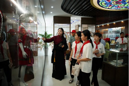 在民族文化交流中心,孩子们通过观看展览、聆听讲解、亲身体验等方式,深入了解中国传统文化的历史渊源、独特魅力和时代价值。他们参观展示传统服饰、手工艺品、民间艺术等元素的展区,感受到了中华文化的丰富多彩。
